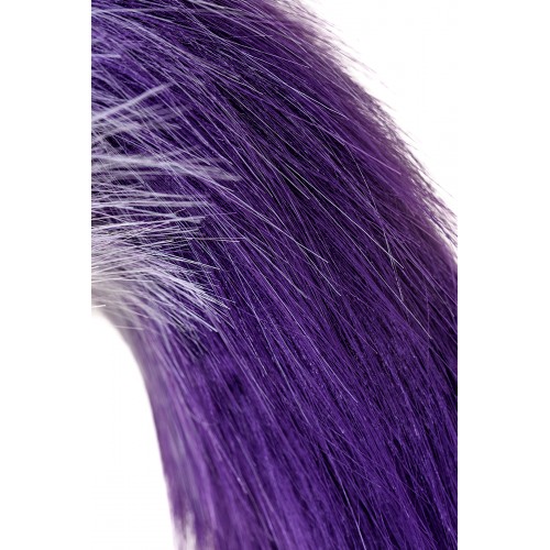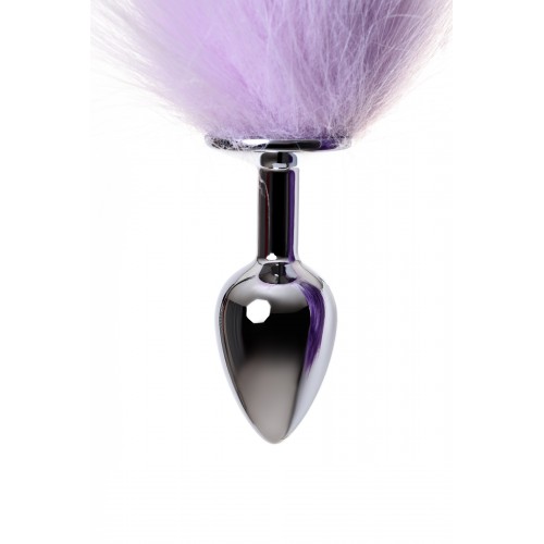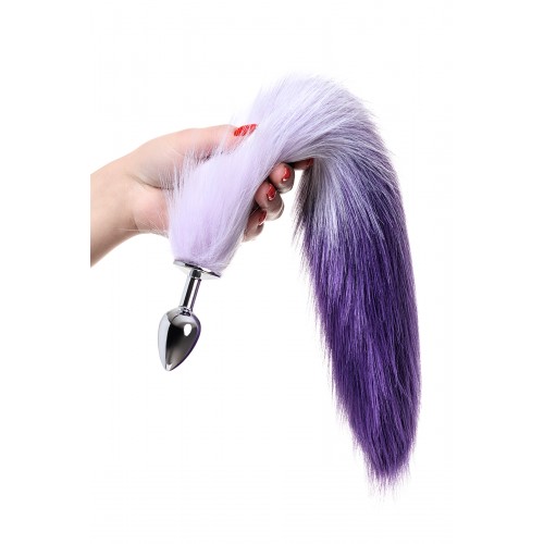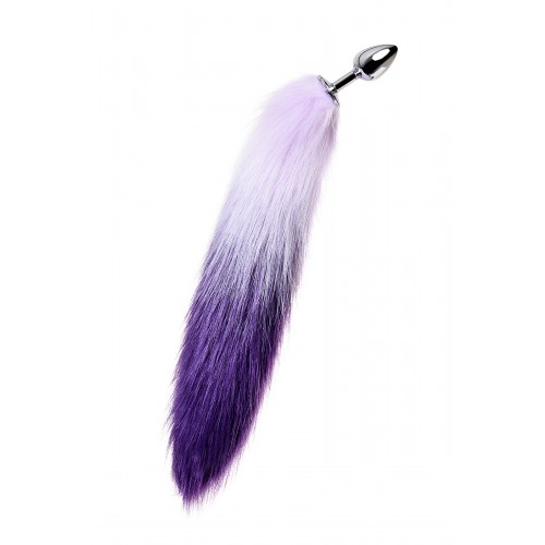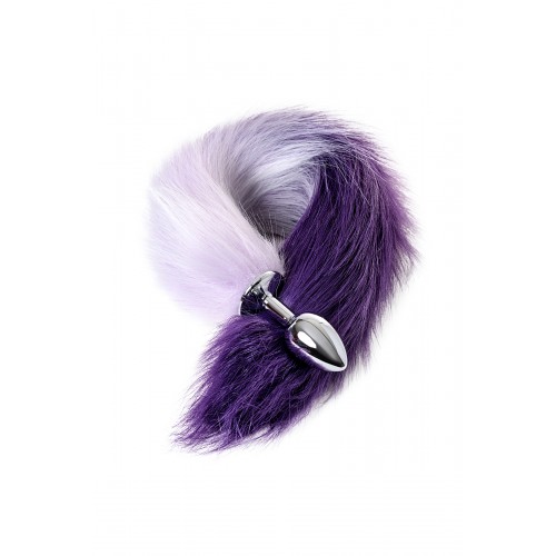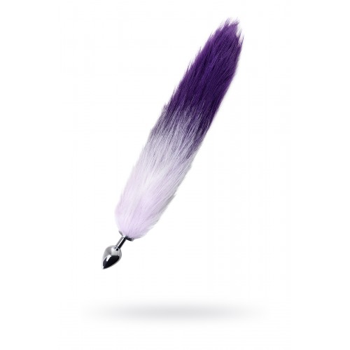 Анальная втулка Metal by TOYFA с бело-фиолетовым хвостом, металл, серебряная, 45 см, Ø 2,7 см