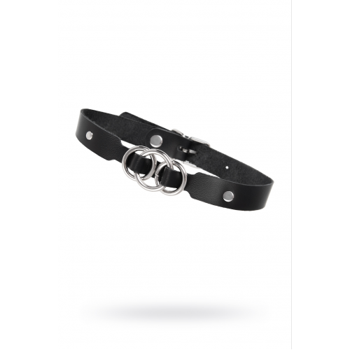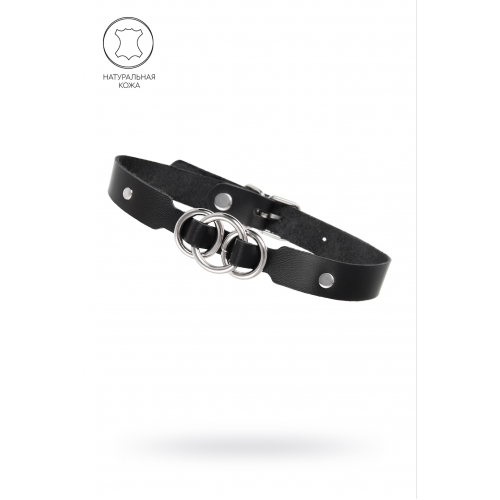 Чокер-ошейник Pecado BDSM, со связанными кольцами, натуральная кожа, чёрный