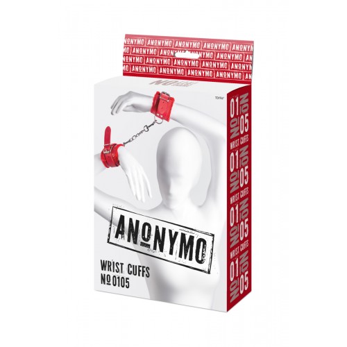 Наручники Anonymo #0105, PU кожа, красные, 27 см