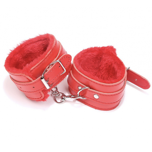 Мягкие наручники красного цвета. Сделаны из безопасного материала экокожа. Внутри мягкий искусственный мех. Соединены на короткой цепочке. Размер регулируется с помощью застежки. Отличное дополнение в любую ролевую игру! Наручники могут быть использованы в тандеме с оковами для ног и кляпом.
