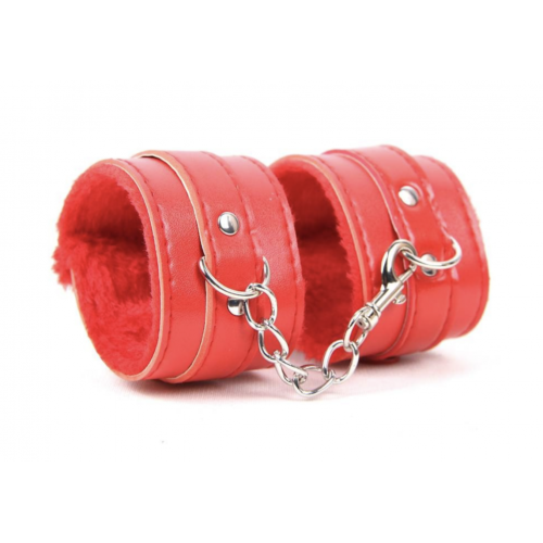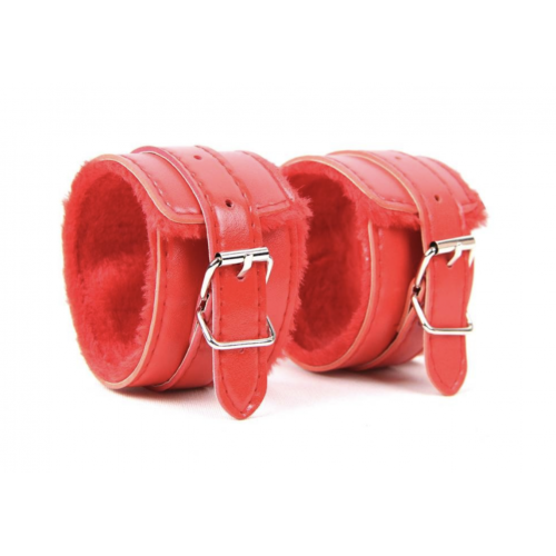 Наручники с мехом, SM Bondage, эко-кожа, красные