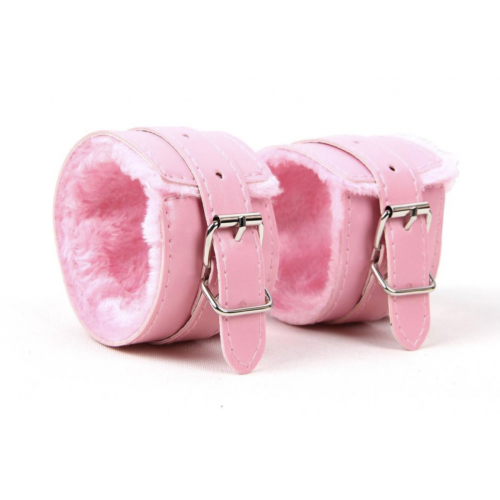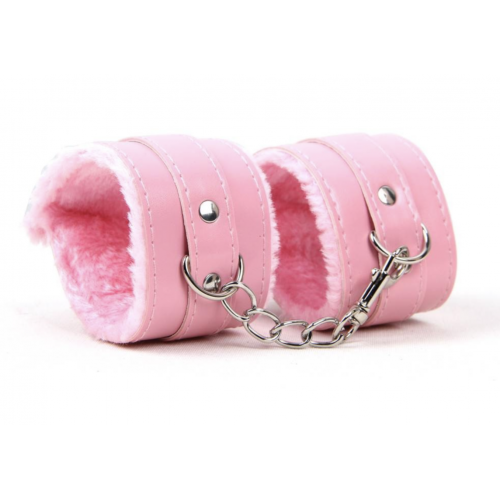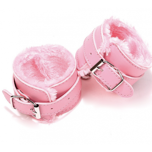 Наручники с мехом, SM Bondage, эко-кожа, розовые
