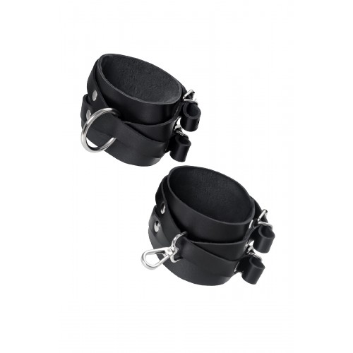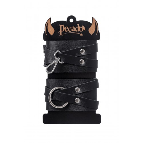 Черные оковы с оригинальным дизайном от российского производителя Pecado созданы для Вашего наслаждения. Они отлично смотрятся как на женских, так и на мужских ногах. Каждая деталь оков сделана с огромным трепетом и вручную. Аксессуар приятно держать в руках, а также использовать по назначению. Натуральная, экологичная кожа с терпкий ароматом обладает хорошей износостойкостью. Материал плотный, прекрасно держит форму и не мнется. Благодаря хорошей ширине манжет и металлической застежке, оковы отлично фиксируют ноги. Вся фурнитура высокого качества. На ремешках имеется хороший запас регулировки, что позволяет подобрать необходимый размер. Обе манжеты обладают разным дизайном. Главное отличие от других изделий в металлических деталях: на одном наручнике большое кольцо, на другом – карабин. При желании атрибут возможно дополнить другими аксессуарами. Подходят как неопытным парам, так и знатокам БДСМ-культуры.