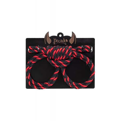 Наручники-оковы Pecado BDSM, "Узел-омега", из хлопковой веревки, черно-красные, 3,5 м
