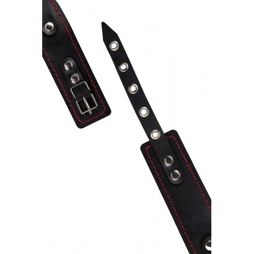 Ошейник Pecado BDSM, с контрастной строчкой, натуральная кожа, черный