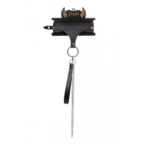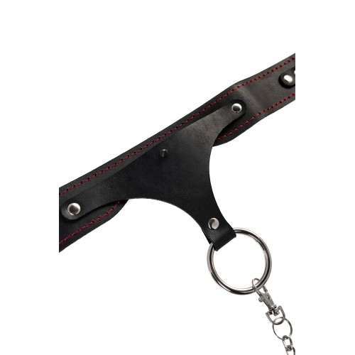 Кожаный ошейник с красной отстрочкой производства Pecado BDSM с металлическим поводком может стать отличным дополнением в БДСМ-образ вместе с наручниками и оковами того же дизайна. Ошейник может выполнять не только свою первичную функцию — без поводка аксессуар послужит своеобразным украшением и добавит пикантности в образ. Добавьте изюминку в ролевую игру и воплотите самую смелую сексуальную фантазию в реальность – взрослые игры для взрослых. Поводок в виде цепочки имеет ручку-петельку для удобства хозяина и крепится надежным стальным карабином к кольцу на ошейнике. Легко отстегивается и превращает ошейник в чокер, который легко вписать в любой образ. К металлическому кольцу также можно присоединить и другие аксессуары при помощи карабинов. Благодаря универсальному размеру ошейник может использоваться как женщинами, так и мужчинами – размер легко регулируется с помощью металлической пряжки, органично вписывающейся в общий стиль. Ширина ошейника 4 см, длина ошейника 38 см, длина поводка 80 см.