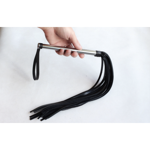 Рукоять выполнена из нержавеющей стали с хромированным покрытием: она блестит, приятно холодит ладонь и придаёт аксессуару роскошный, почти ювелирный акцент. Плети изготовлены из прочной искусственной кожи премиум-качества — они мягко скользят по телу или, наоборот, могут подарить более острые ощущения, в зависимости от силы и техники удара.