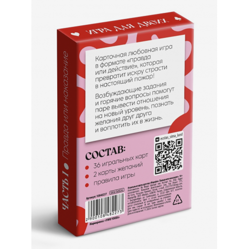 Каждая карта - это шанс узнать партнёра ближе, испытать азарт и внести немного спонтанности в вечер. Одно задание - и скуке не останется места!