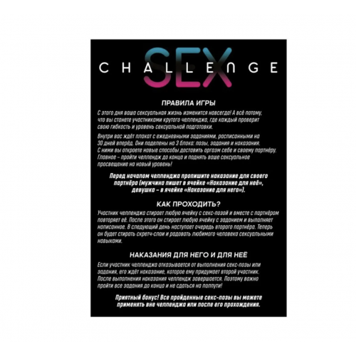 Плакат для пар со скретч-слоем «Секс-челлендж», А3, 18+