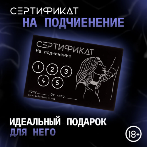 Сертификат «Подчинение», 11.5×8 см, 18+