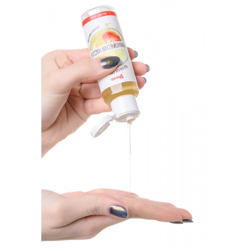 Натуральные масла в составе сделают массаж не только насыщенным и чувственным, но и полезным для вашей кожи. Отлично скользит и смывается водой. Праздничный аромат клубнички в шампанском с лёгкостью расслабит и подготовит вас к чувственному массажу. Подготовьтесь к свиданию: После приёма расслабляющей ванны побалуйте себя ароматным массажем. Налейте масло в ладони и лёгкими массажными движениями массируйте своё тело. Освежающий аромат и натуральные масла в составе сделают вашу кожу приятной и мягкой. Применение: Налейте масло в ладони и немного разотрите в руках. Мягкими и плавными движениями массируйте тело.