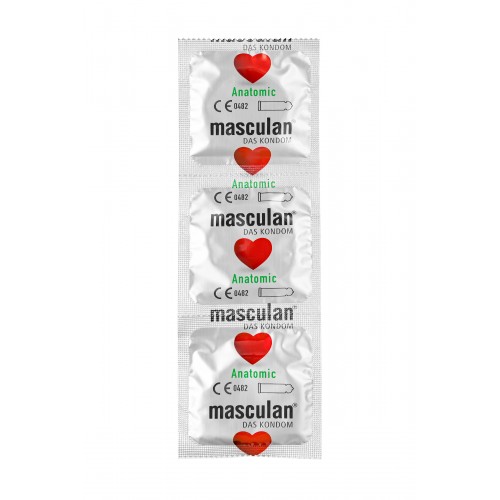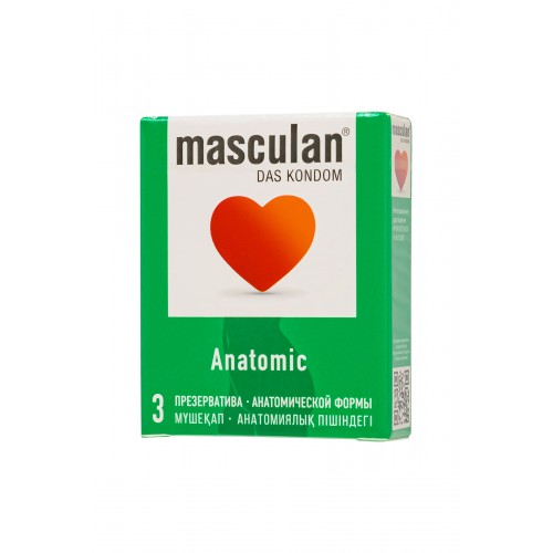 Индивидуальный подход от Masculan® к анатомическим особенностям каждого мужчины достигается благодаря презервативам Anatomic № 3. Это облегающие анатомической формы презервативы с накопителем и особой канавкой, которая позволяет им наилучшим образом адаптироваться к форме полового члена.