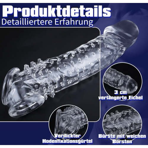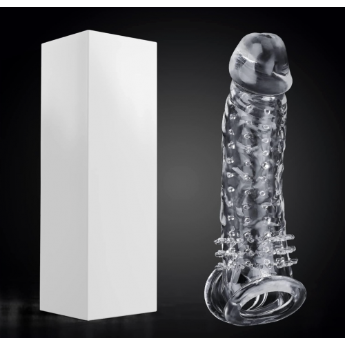 Насадка для увеличения длины и толщины, с креплением на мошонку, прозрачная