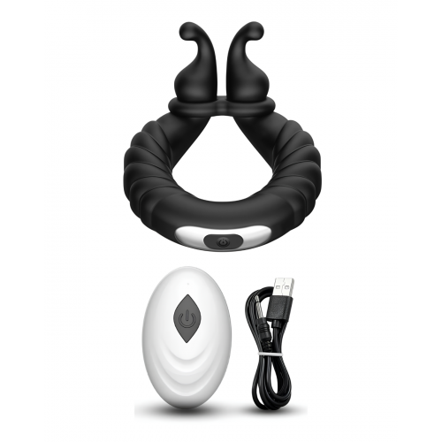 Перезаряжаемое эрекционное кольцо с пультом Д/У и усиками для дополнительной стимуляции