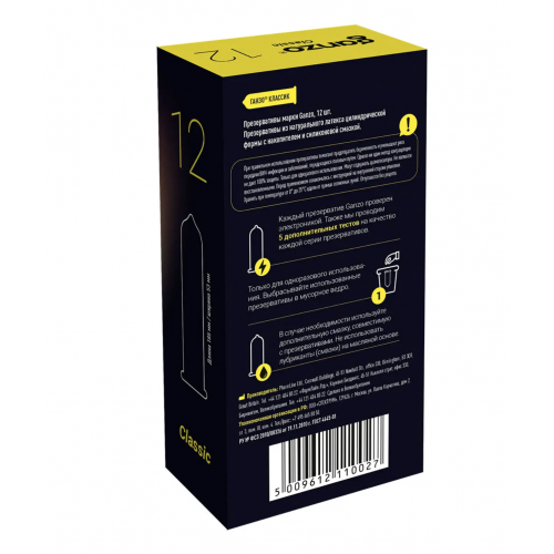 Презервативы Ganzo, classic, классические, латекс, двойная смазка, 18,5 см, 5,2 см, 12 шт.