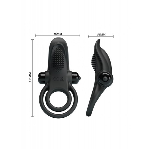 Двойное эрекционное кольцо с вибростимуляцией клитора, Pretty Love, черное