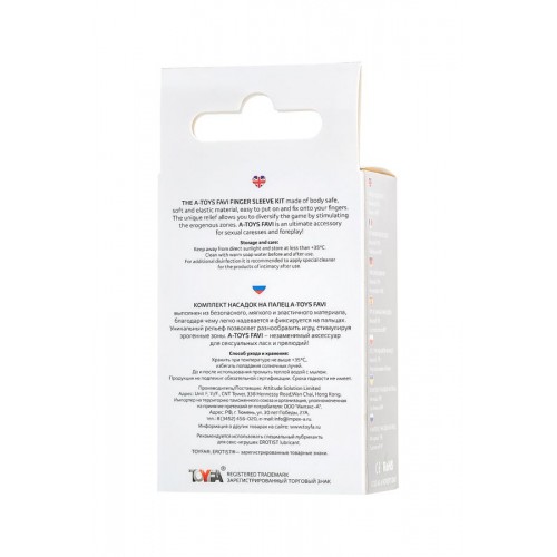 Комплект насадок на палец A-Toys Favi выполнен из безопасного, мягкого и эластичного материала, благодаря чему легко надевается и фиксируется на пальцах. Уникальный рельеф позволяет разнообразить игру, стимулируя эрогенные зоны. A-Toys Favi – незаменимый аксессуар для сексуальных ласк и прелюдий!