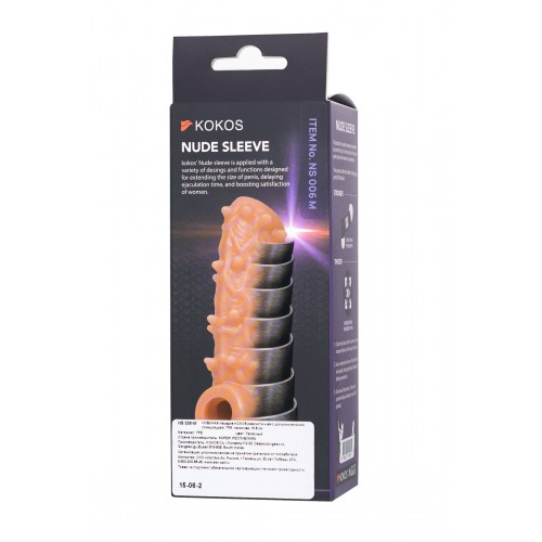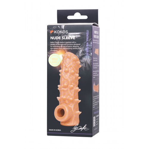 Насадка реалистичная KOKOS NUDE SLEEVE с дополнительной стимуляцией, TPE, телесная, 12 см