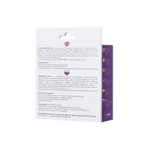 Виброяйцо A-Toys — это уникальная секс-игрушка, которая добавит интимным играм нотку пикантности. Оно отличается компактным размером, гладкой бесшовной поверхностью, качеством материалов, таких как медицинский силикон и ABS пластик и удобным управлением с помощью проводного пульта. Его универсальность позволяет использовать игрушку не только для клиторальной и вагинальной стимуляций, но и для стимуляции любой из эрогенных зон партнера. А 20 режимов с мощными импульсами вибрации будоражат при первом прикосновении и помогают подвести партнера к волнительной кульминации. Рекомендуется купить фирменный power bank TOYFA, чтобы получать удовольствие в любом месте! Максимальный выходной ток источника питания — 1 А.